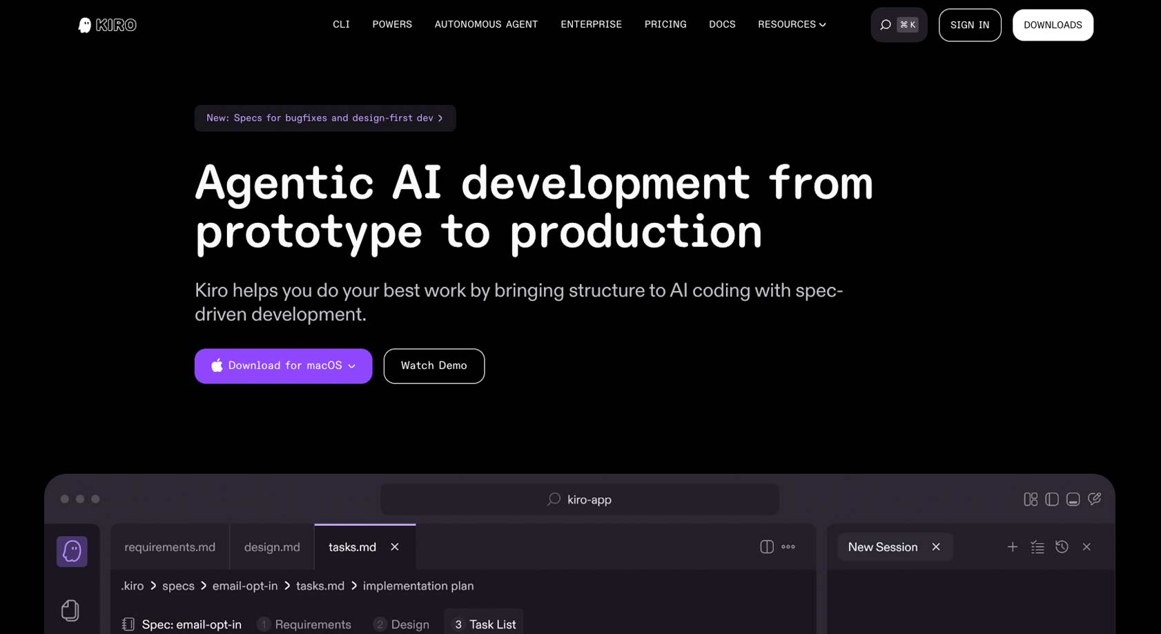 Kiro ist eine agentische IDE von AWS, im Sommer 2025 gelauncht und auf VS Code (Code OSS) basierend. Das zentrale Alleinstellungsmerkmal ist Spec-driven Development: Anstatt direkt Code zu generieren, wandelt Kiro zunächst den Prompt in strukturierte Anforderungen, User Stories und Akzeptanzkriterien um und erstellt dann erst den Code. Dieser Ansatz macht Kiro zum einzigen Tool, das Vibe Coding mit einem professionellen Entwicklungsprozess verbindet.